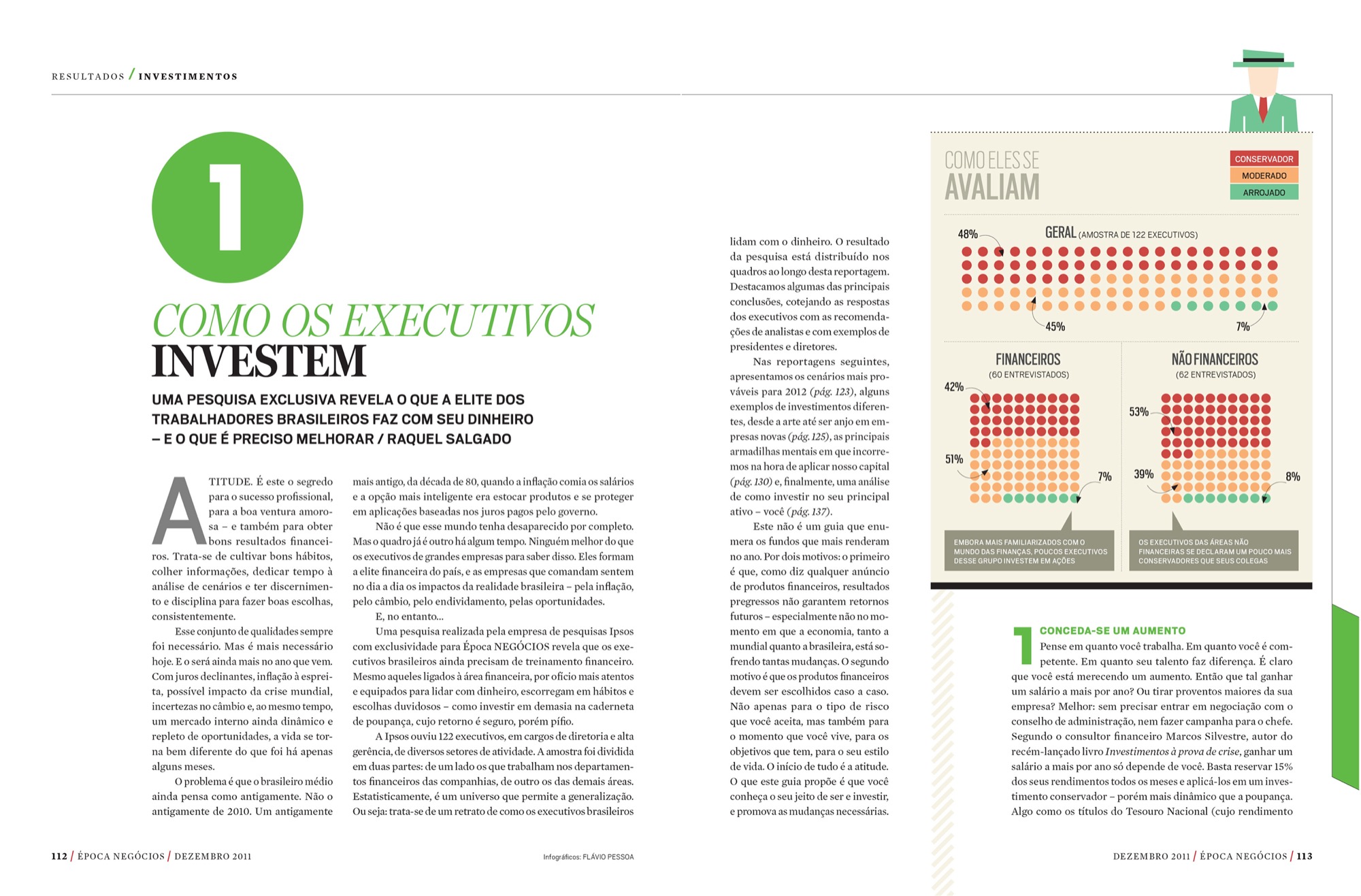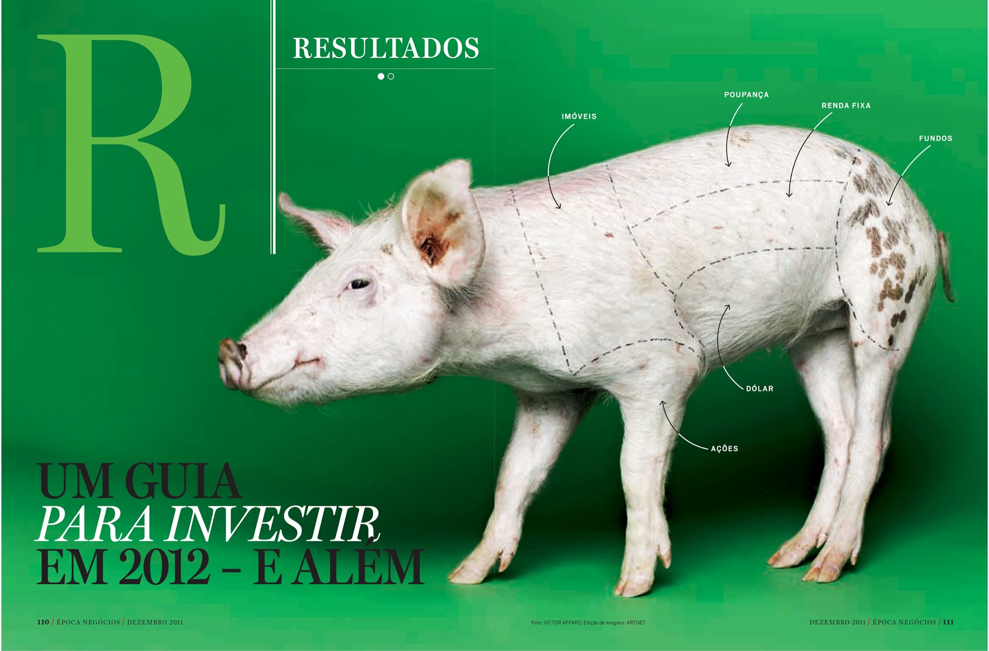 A 40-page special on how to manage your finances for 2012. This was a big project, and we needed good visual anchors to hold the reader’s attention. The choice of an icon in a fresh view (the pig) and the use of graphics and illustrations with similar styles brought all of this together.