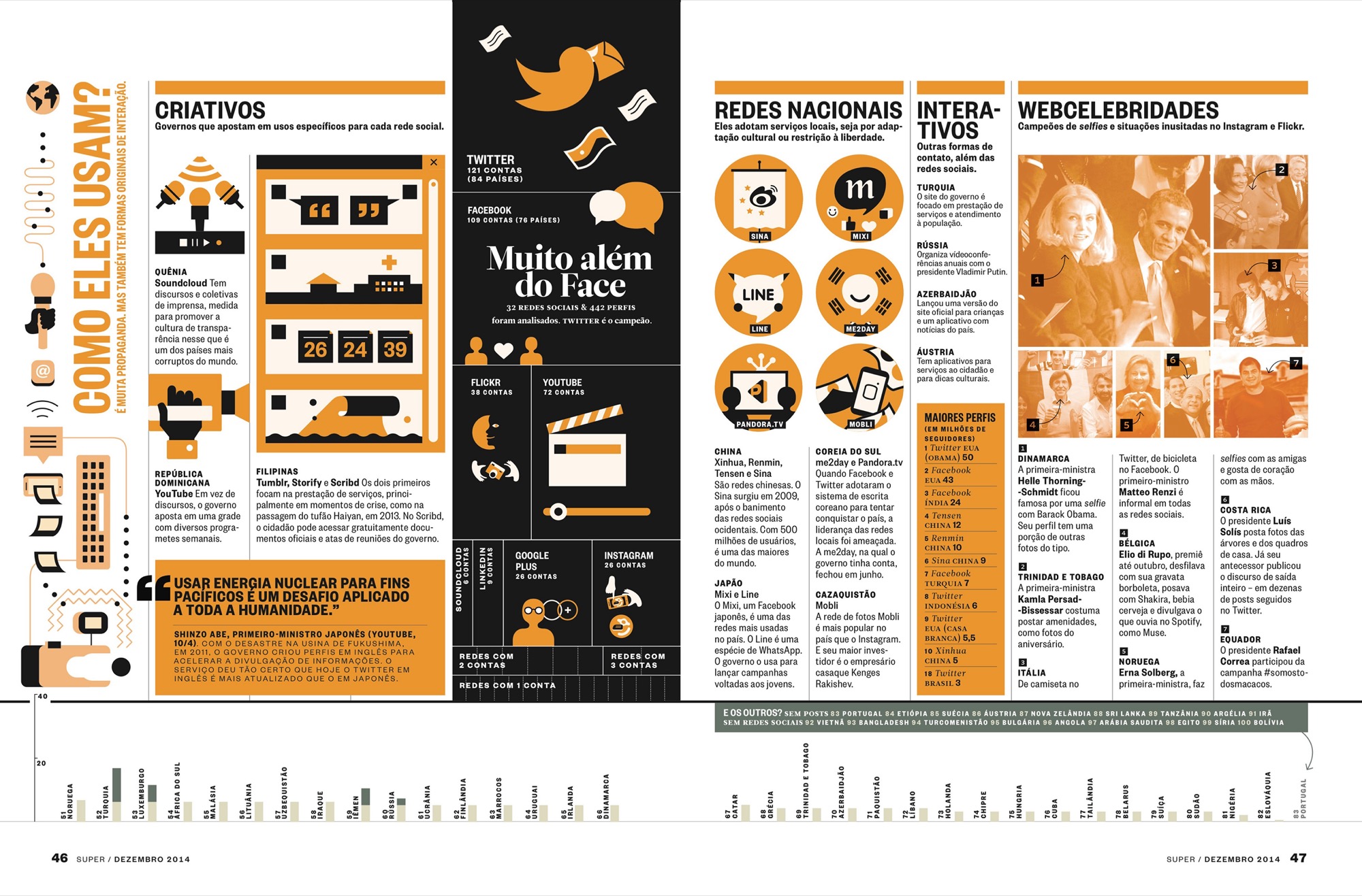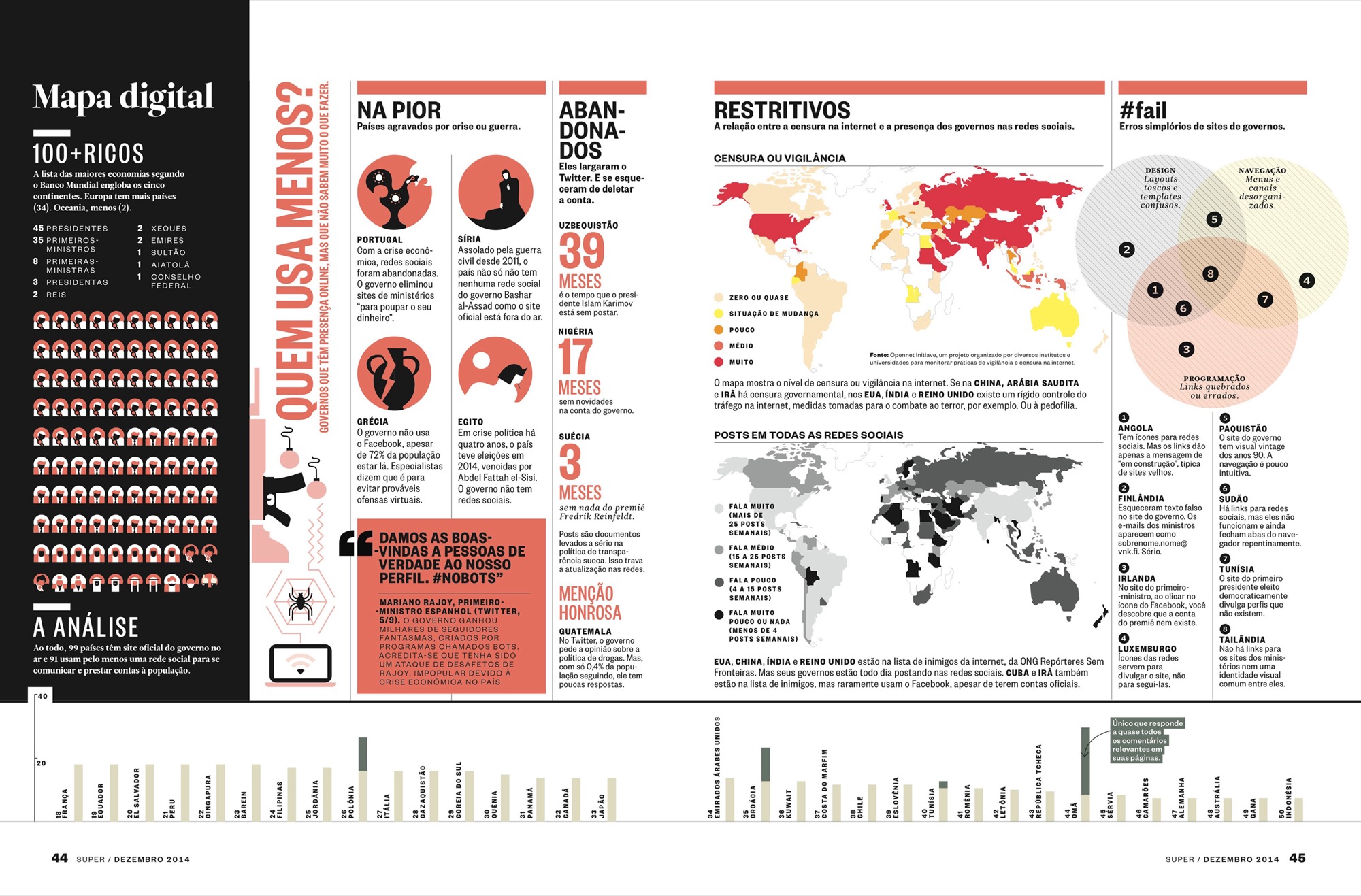 During my time working at Superinteressante, I worked on various infographics/dataviz projects. Usually running on a spread or over more, they would be about many different themes and types of data – always a challenge to find the right format and aesthetic to communicate our findings.