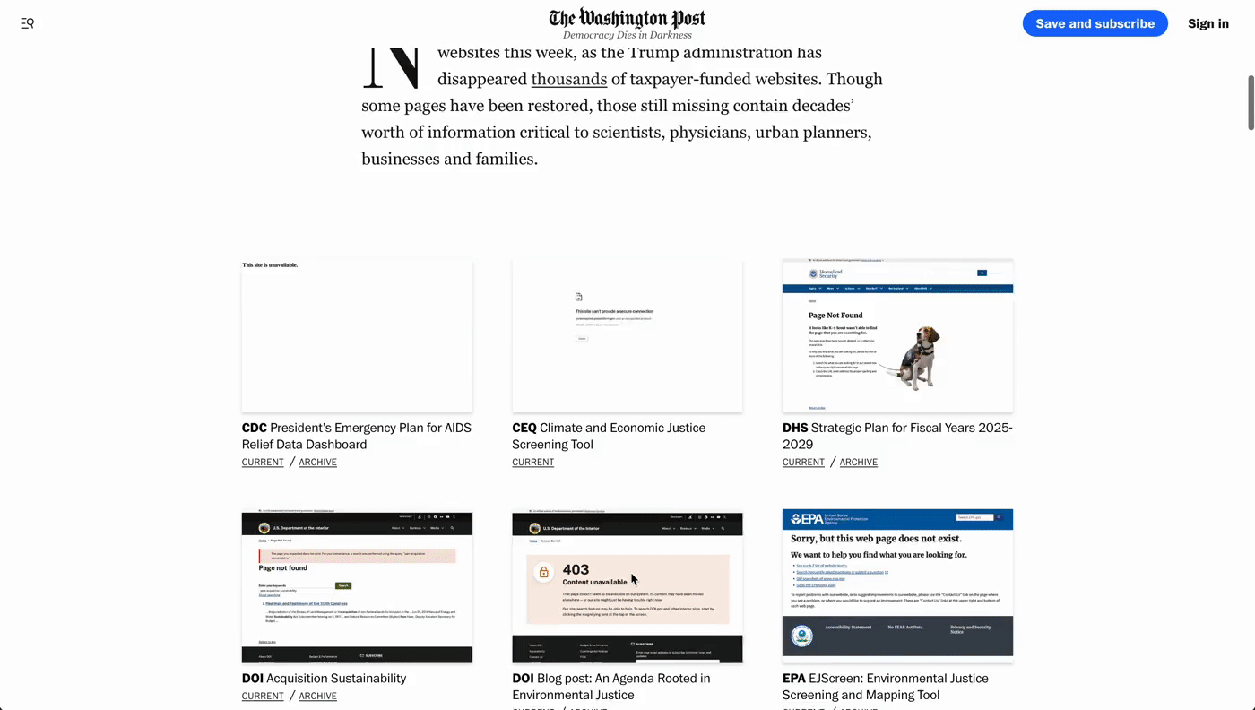 Catherine Rampell, former columnist, and Amanda Shendruk, former visuals opinion journalist at The Washington Post, started collecting and gathering examples of data deletion and website purging done by the Trump administration at the beginning of 2025.
