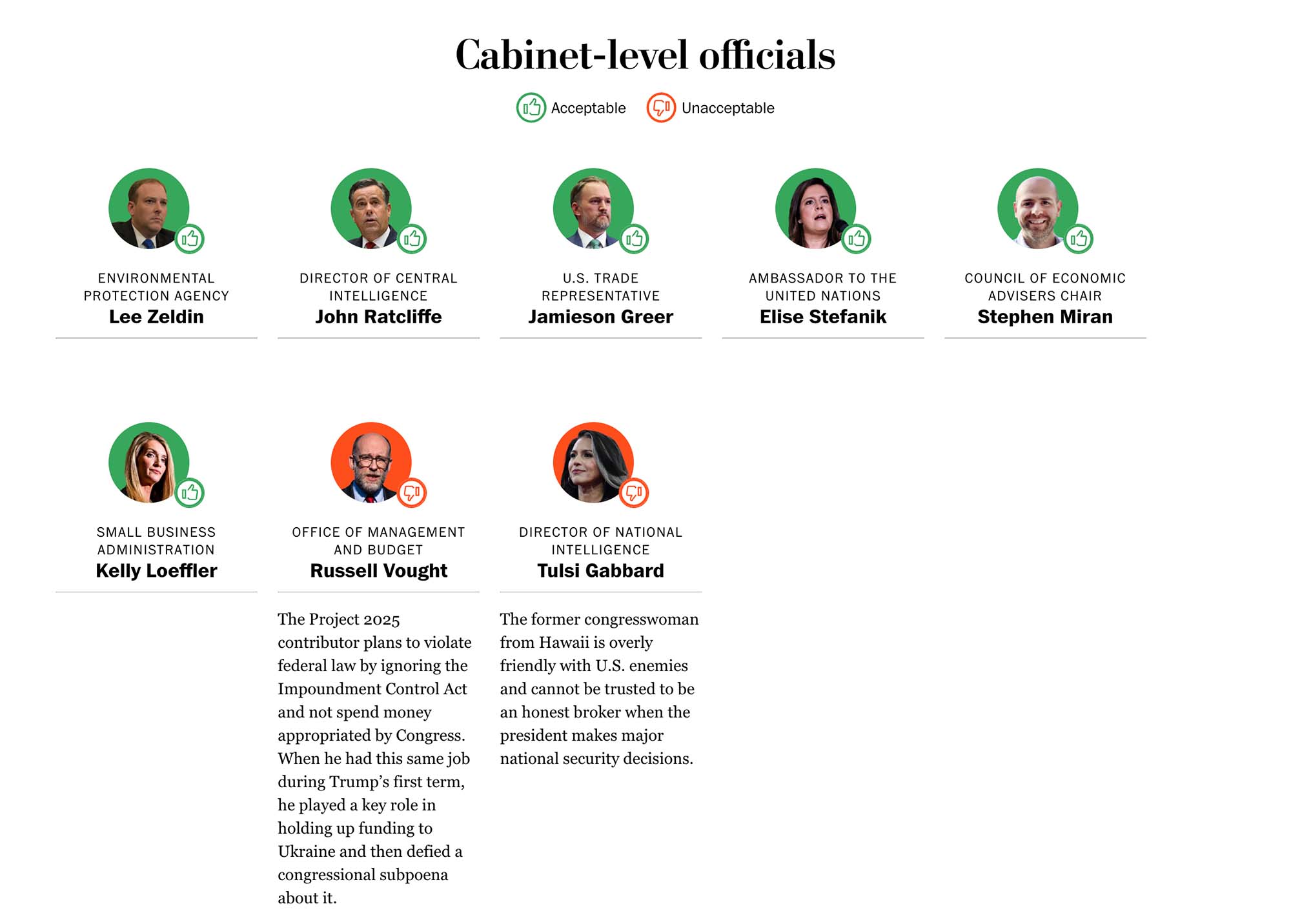 An editorial on who’s fit or who’s not fit as a cabinet pick in Trump 2.0. A quick turnaround – design and coding.