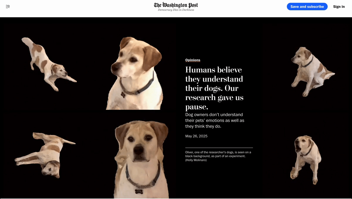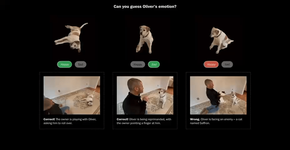 A fun piece - I created a animated collage of the star dog of the article, plus some scrollytelling pieces and a custom quiz for readers to guess as well the dog’s emotions. Coding, design and editing (with the help of Chiqui Esteban and Aaditi Lele).